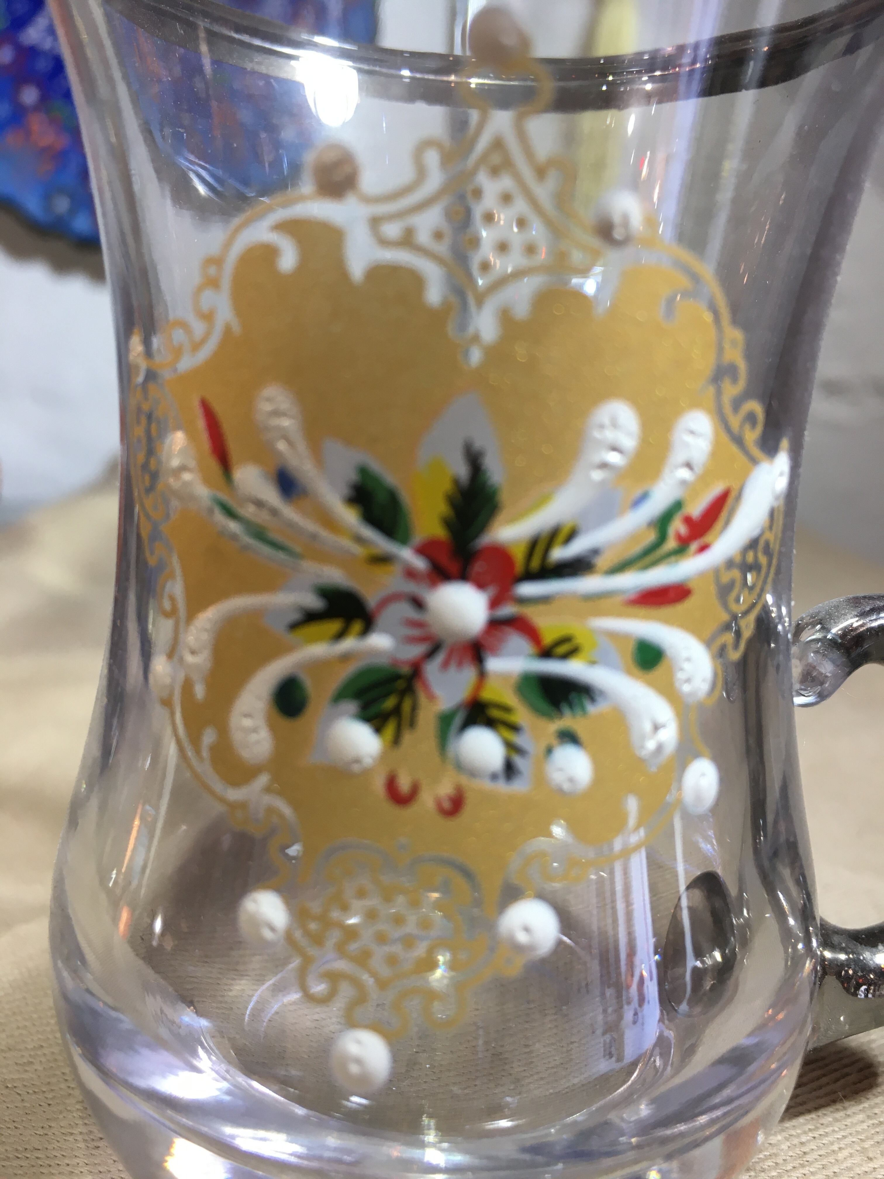 売り切れました。 トルコ製チャイグラス 取手付き 手描き 耐熱 熱湯ok レンジ不可 極薄ピンク色 紅茶大国トルコのハンドメイドチャイグラス。 耐熱なので、熱燗やHotのアルコールにと、 重宝する大きさです。 プレゼントにもオススメです。